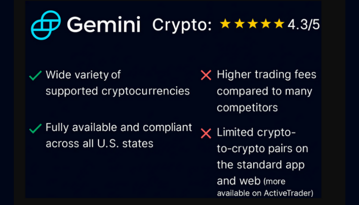 Gemini is a strong choice for casual investors and beginners who value regulatory compliance, security, and easy access across the U.S., though traders looking for lower fees or more advanced trading options may want to consider alternatives.