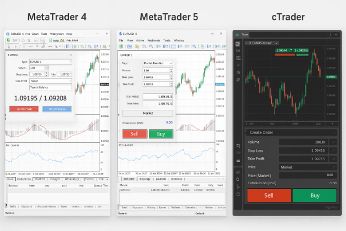 - cTrader: Known for its fast trade execution, advanced charting options, and modern, user-friendly design. Many experienced traders prefer it for speed and detail.