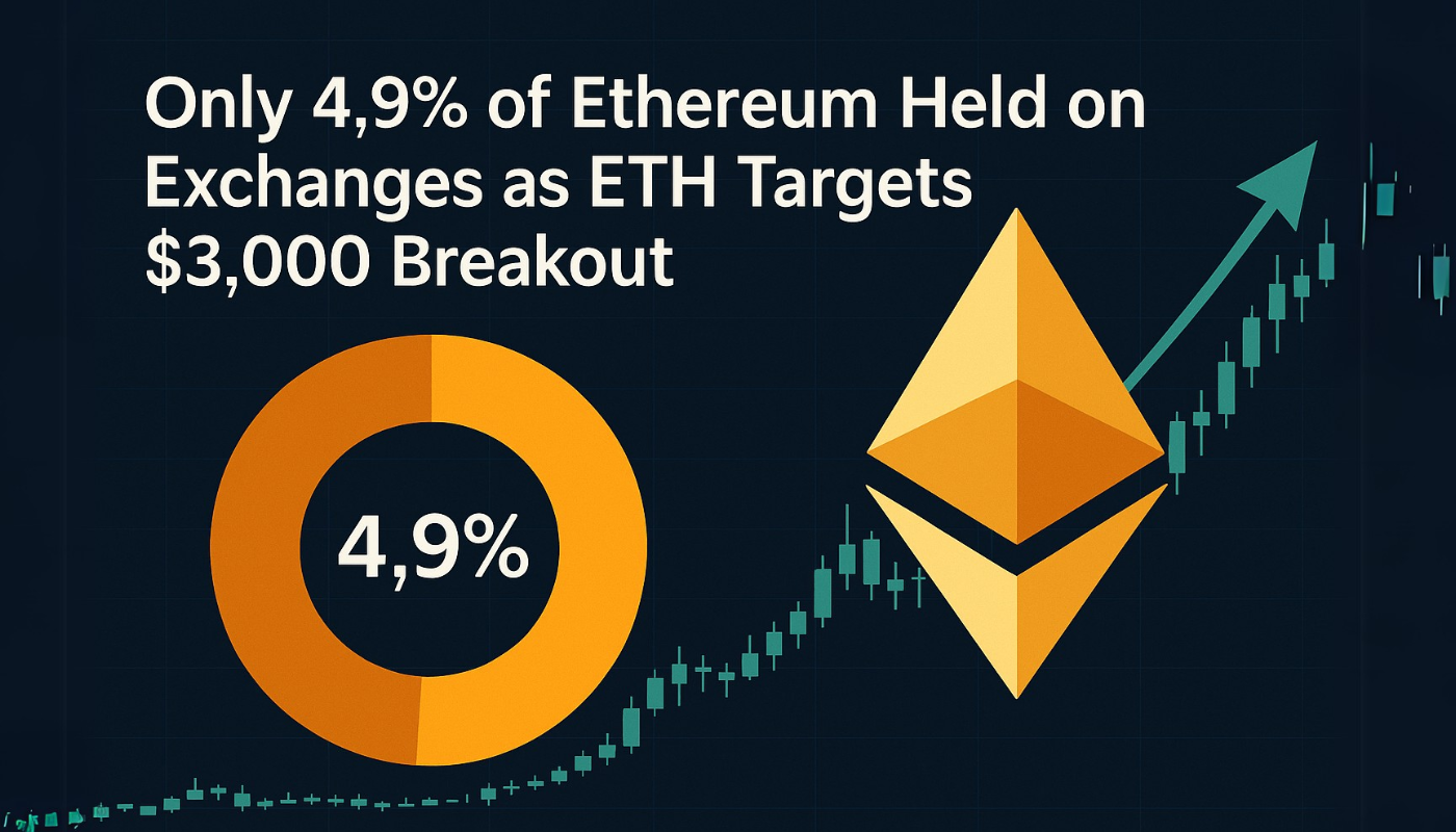 Ethereum (ETH) has reached a significant milestone in its on-chain metrics, with just 4.9% of total ETH supply now held on exchanges—its lowest level since inception, according to blockchain analytics firm Santiment.