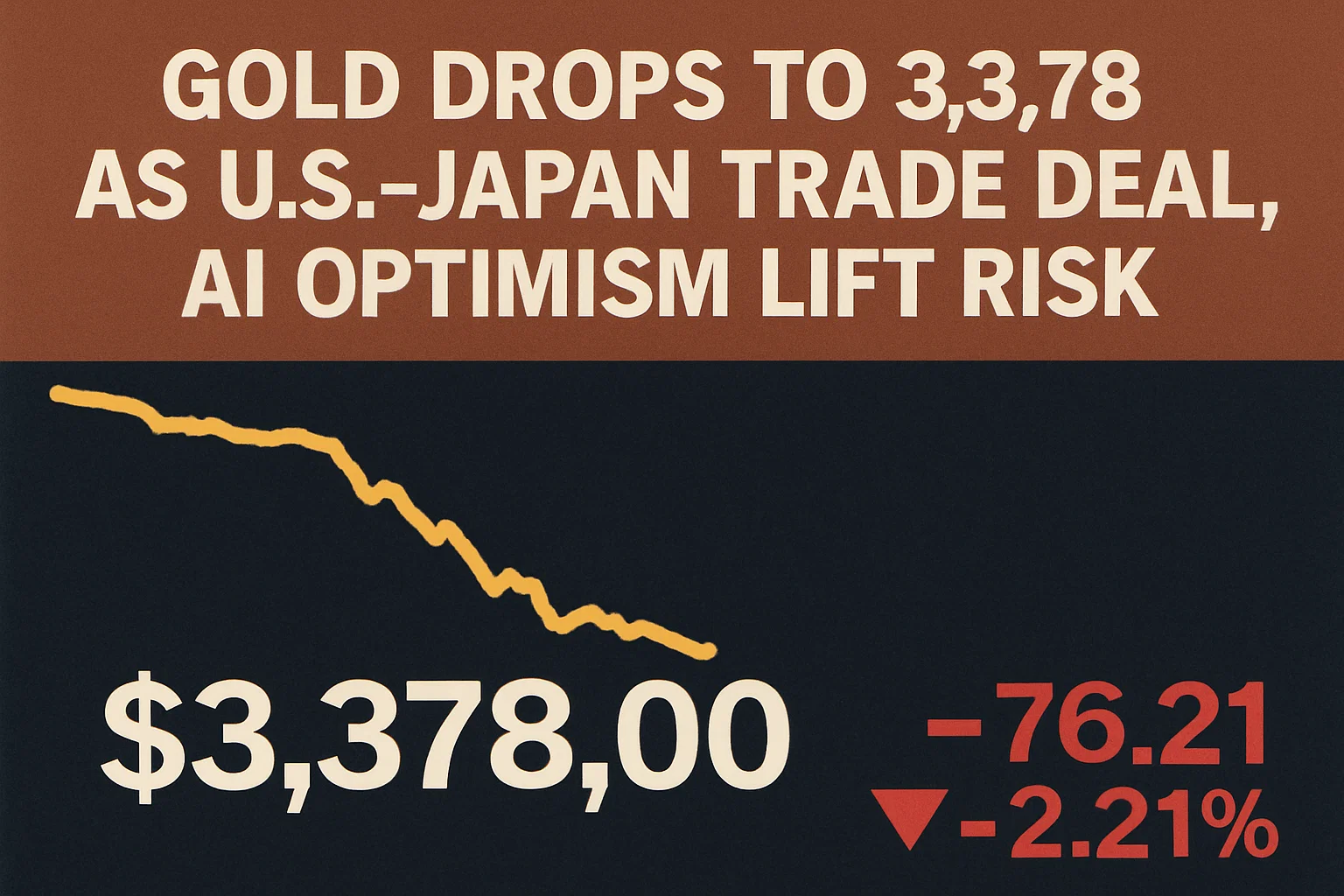 Gold prices declined on Thursday as investors shifted toward riskier assets following a trade agreement between the U.S. and Japan and upbeat earnings in the tech sector. The safe-haven metal retreated from recent highs, weighed down by renewed optimism in global markets.