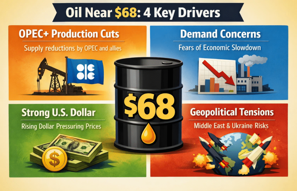 Oil prices have climbed toward $68 per barrel, the highest level in nearly four months, as severe winter weather disrupted U.S. output and a soft dollar made oil more attractive to global buyers. This upward trend reflects a mix of supply limitations and broader macroeconomic forces.