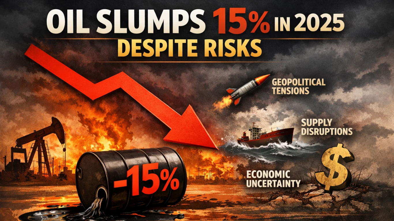 Oil prices edged slightly higher in midweek trading, yet global benchmarks remain on track for one of their weakest annual performances in years. Brent crude is poised to finish 2025 with a decline of more than 15%, marking its third consecutive yearly loss, the longest such streak on record. Futures for the March Brent contract traded near $61.44 a barrel, while U.S. West Texas Intermediate (WTI) hovered around $58.06, both posting marginal daily gains.